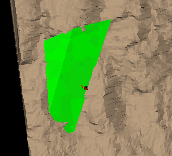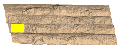 Select an area (using any suitable primitive) on a rock face surface for analysis.