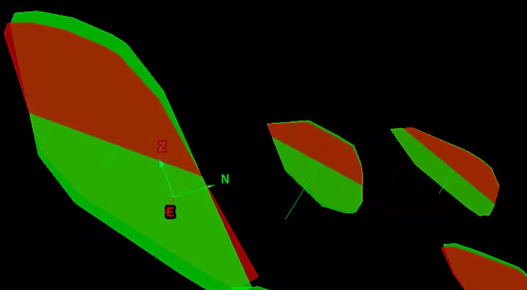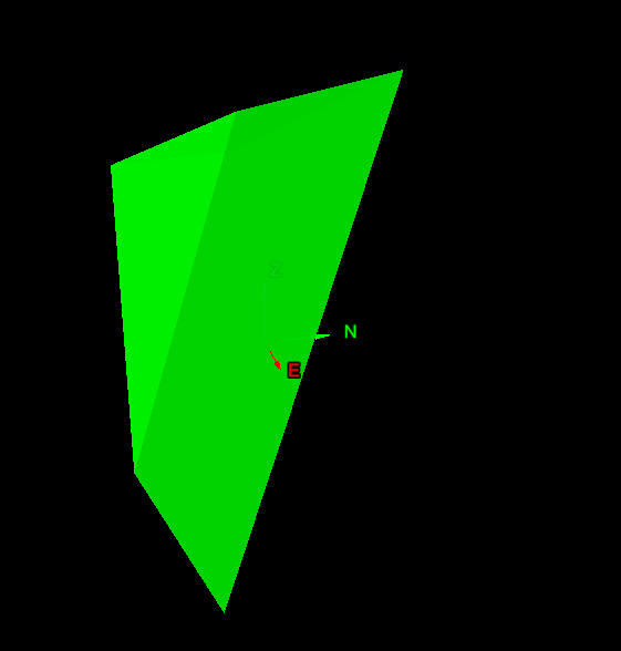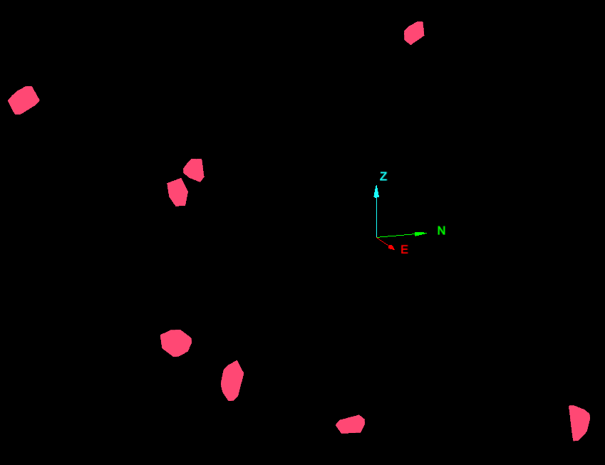 The basic process consists of choosing discontinuities which represent the sides of the solid you wish to construct. Generally, this will define only part of the solid. Next, finish off the solid by defining the remaining sides clicking on three points as close to the plane you want to create. You can continue to build up a more detailed solid by defining more planes at relevant corners etc. The function will automatically extend and trim the planes to create the solid desired. You can use the Visibility editor to hide and view elements (including the rock wall) as you build up the solid.