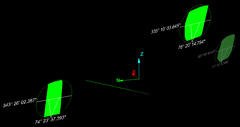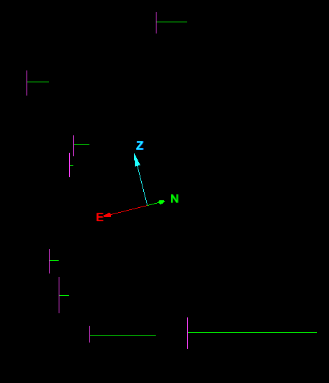 Click OK or Apply to carry out the procedure. New sets of discontinuities will be created at the location of the input discontinuities, but oriented at the mean direction for the discontinuity set. Lines are created that represent the spacings between the nearest discontinuities according to the criteria entered. Right click on a discontinuity and chose View front on or View side on to see these angles accurately (ensure you are in orthographic projection mode , not perspective).