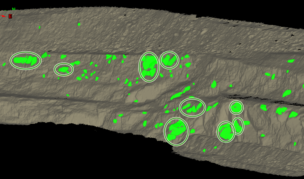 The Create cell tool will create a single cell object which can contain a number of selected cell runs. This cell object can be used to group cell runs of a specific pit or area. The cell can be combined with other pit and wall features for other cell mapping functions.