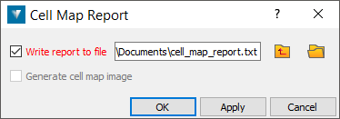 - You can write out the data to a text file or PDF document. The PDF will also allow the inclusion of a cell map image. If you untick the Write report to file checkbox, the report will be displayed in the report window only.