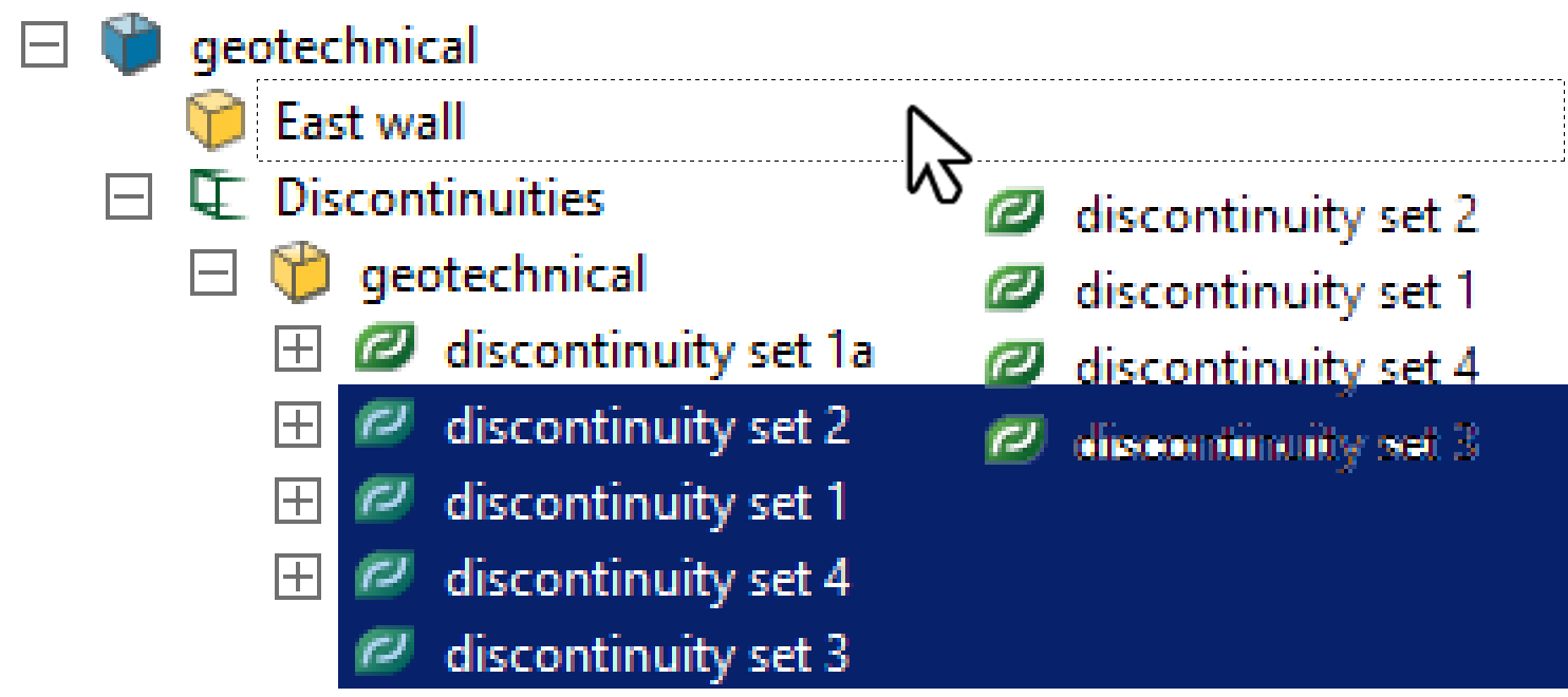 - Select discontinuity sets to be averaged. If a selection contains other individual discontinuities and grouping in cells, these are ignored.