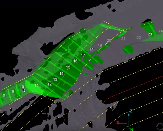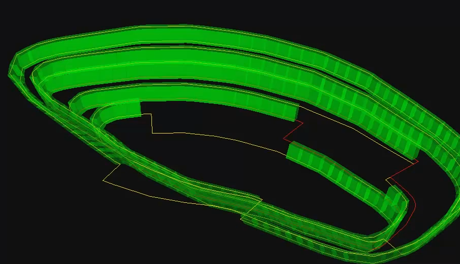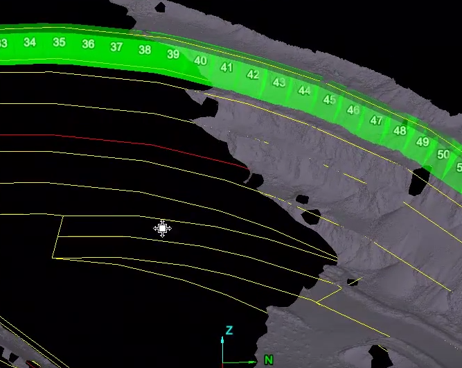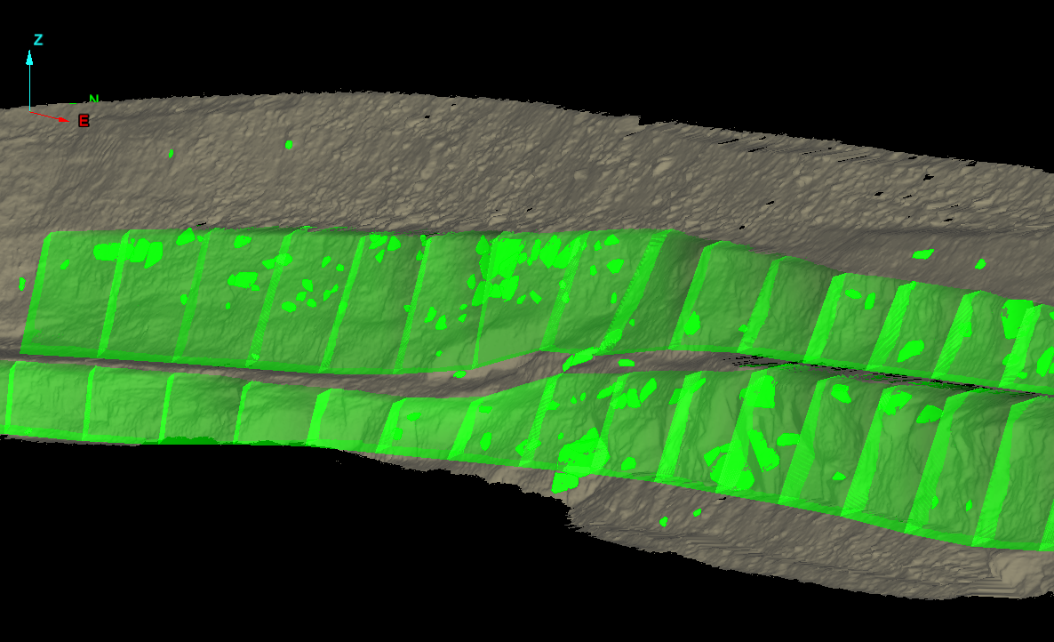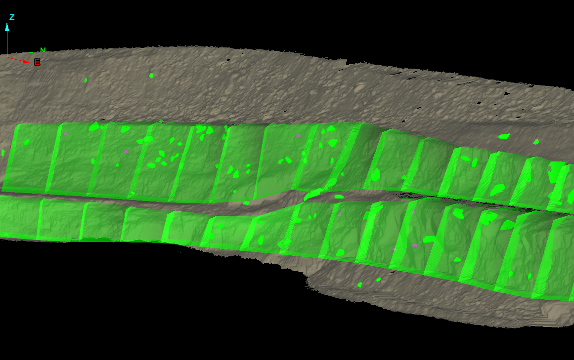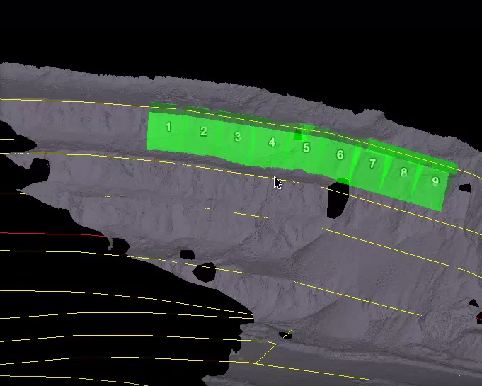 Cell run created using top toe and crest lines in a pit configuration.