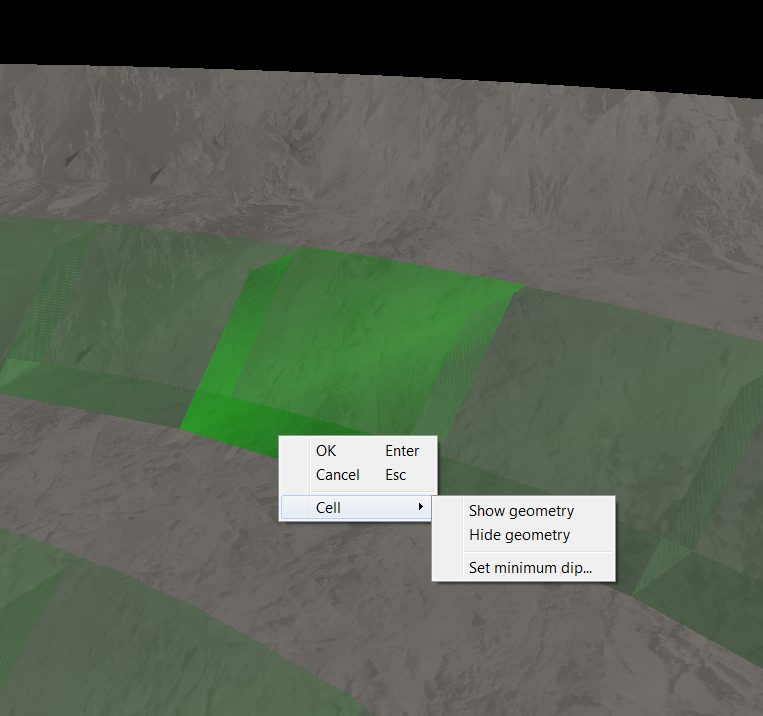 | Set Minimum Dip | Sets the minimum dip for a cell manually, by selecting points on the associated surface segment. |
