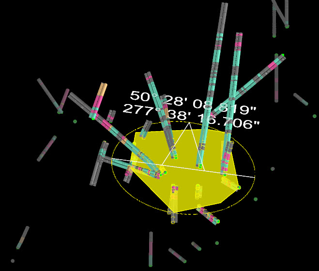 | Extract | Enables the user to identify individual regions containing planes of interest, and then automatically highlighting and selecting all similar planar regions over the rest of the surface/area of interest. A key application would be to select one fault plane and the procedure will automatically identify all others in the view that meet the selection criteria. |