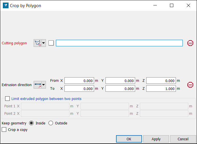 Select the Extrusion direction of the cropping action. An extrusion of the polygon in the direction specified will display.