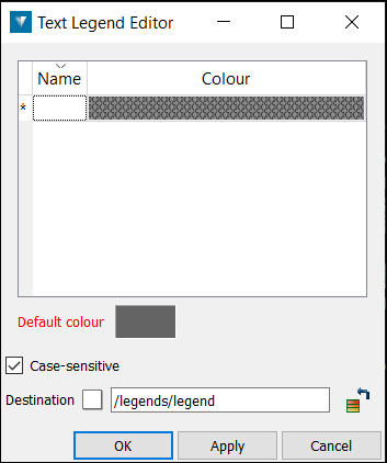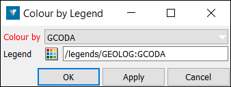 Text legend is used to create or edit a set of text names and the colours to represent the names. The resulting legend may be used to colour by legend for data such as drillhole horizons.