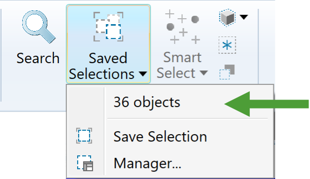 To load a selection, click the drop-down arrow next to Home > Selection > Saved Selections and click the selection.