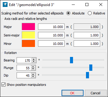 Note: Changes made to the orientation or position of the ellipsoid you are editing will only apply to that single ellipsoid.