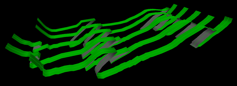 are objects that can be used to control the shape of an implicit model. A ribbon is similar to a line, with the important distinction that a ribbon has two sides, representing the “inside” and “outside” of a surface. When added as an input to implicit modelling, ribbons constrain the model such that the points of the ribbon sit on the surface—with the outside and inside of the ribbon matching the inside and outside of the surface.