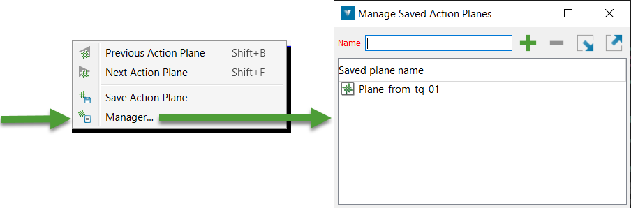 — Several options for defining the position of the action plane using points and planes, while also in section view mode (strip). - Save and restore action plane