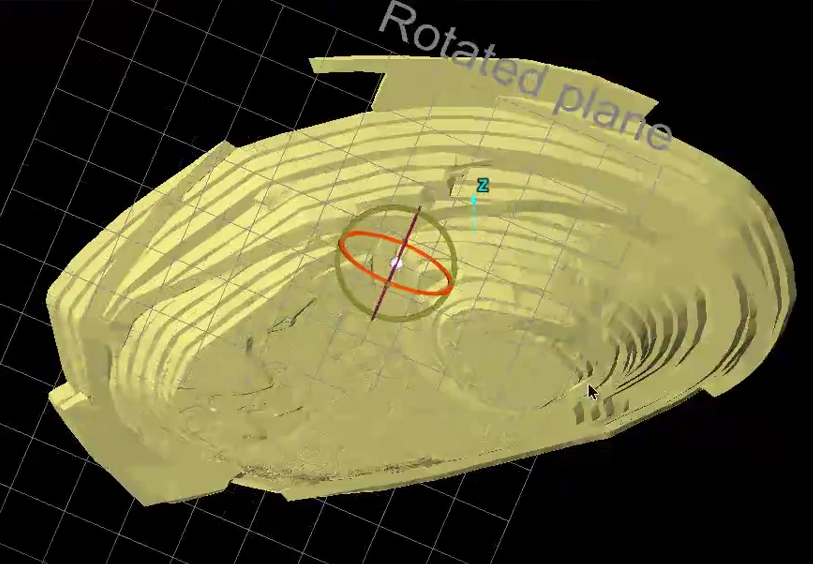 The action plane provides a mechanism to help place points in 3D space as well as set up a convenient 2D plane to perform 2D functions on. The action plane can be widely manipulated and placed around a scene, floating in space at different angles or fixed to strategic reference points on a surface.