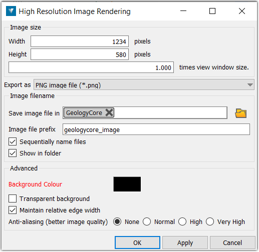 You can export the View Window as an image, a 3D PDF file, or a U3D file in GeologyCore.
