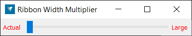 adjusts the width of all ribbons in the View Window. This may be necessary depending on the scale of the working area. While being a visual change, the width of each ribbon determines where the offset points for the modelling will sit. This affects the distance offset surfaces will sit away from the zero-level surface. Ribbon width is increased using the slider (from actual width to large).