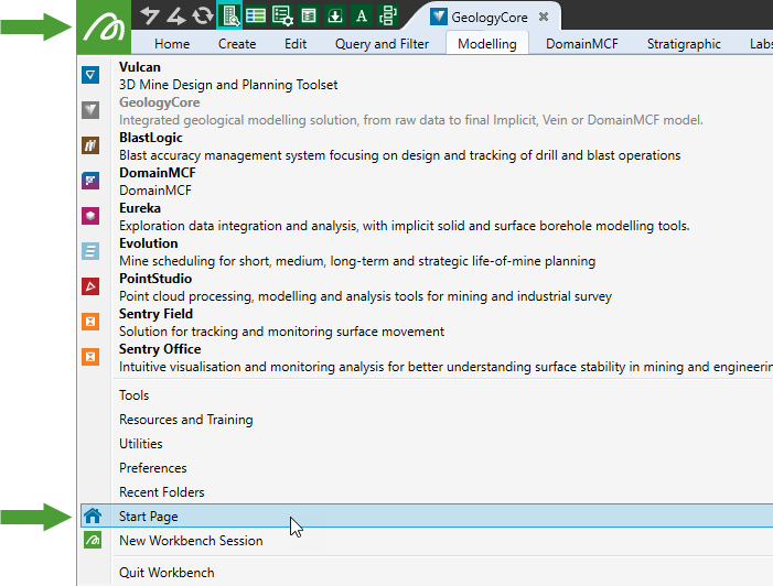 Switch to the Workbench Start Page. If the Start Page is not open, you can open it any time by going to