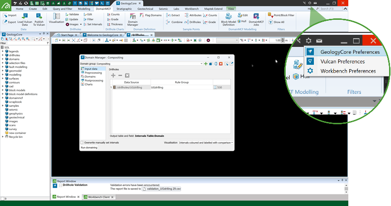 GeologyCore has been designed to integrate seamlessly with Maptek Vulcan. Manage your drillhole and mine data in Vulcan. Use GeologyCore to validate your data, define domains and generate models, before publishing back to Vulcan to model grades and perform advanced statistical analysis.