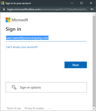 Click Log in using Azure Active Directory. A window will appear prompting you to sign in to your Microsoft account.