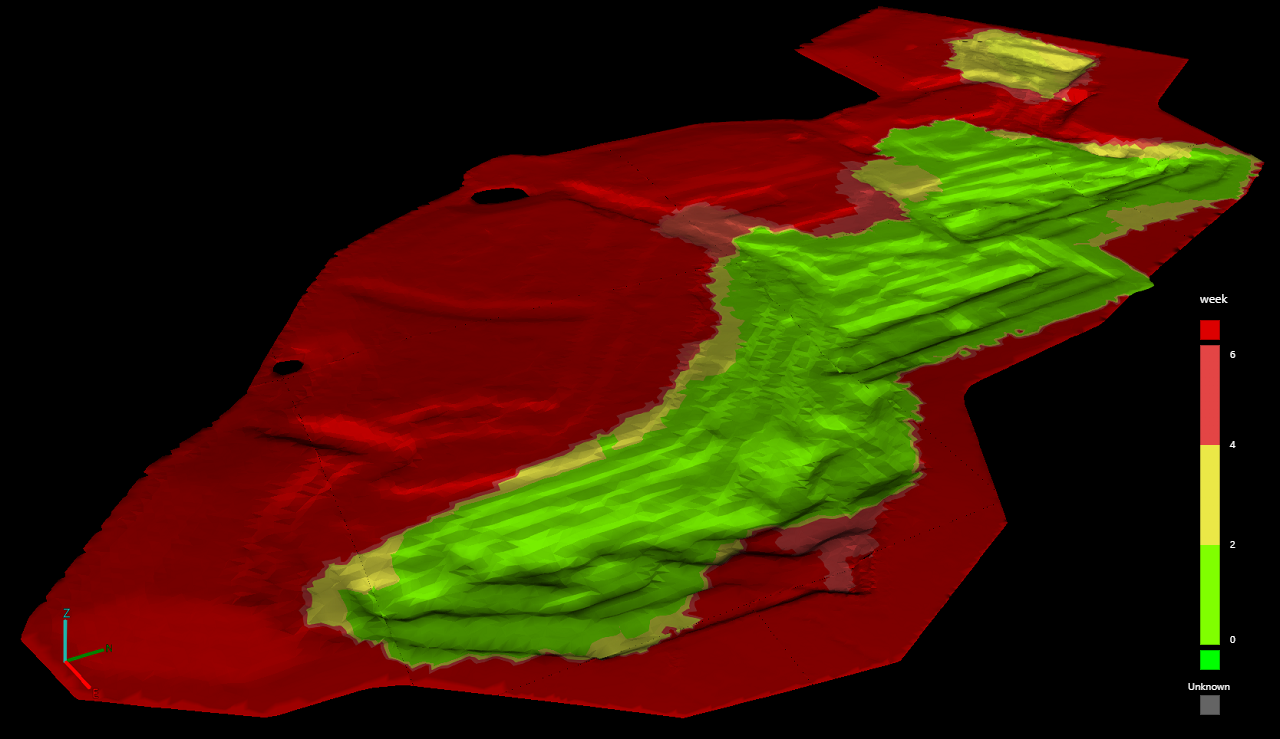 Tip: Colour the surface by time since capture to visually identify which parts of the model have been recently updated, as shown in the image below. See Time since capture for instructions.