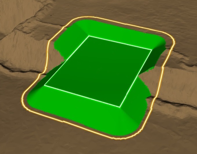 New surfaces can contain differences in elevation with the old surface along their boundaries. These differences can result from minor registration discrepancies or missing data that was not captured in either the old or new surfaces. In such cases, GeoSpatial Manager can either honour the data exactly or alternatively add a fringe to each new surface. A fringe is a sloping extension added to a new surface to provide a smooth transition to the old surface. Without a fringe, elevation differences result in abrupt, cliff-like vertical jumps along the boundary.
