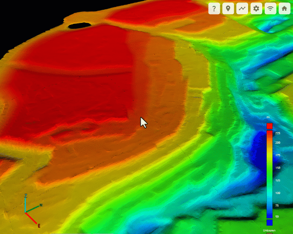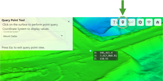 The viewer supports a couple of simple queries based on the geometry of the surface model. These queries are available from the tool buttons located in the top-right corner of the viewer and are described below.