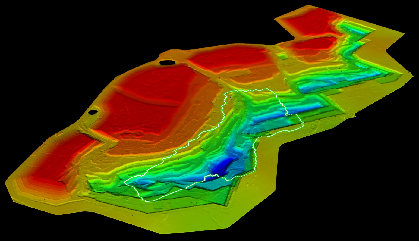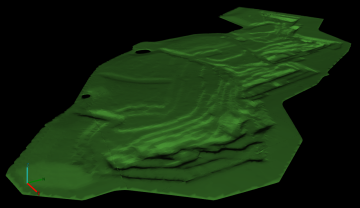 Example of a combined as-built model viewed in GeoSpatial Manager. The model is composed of many source surfaces, one of which is highlighted. |