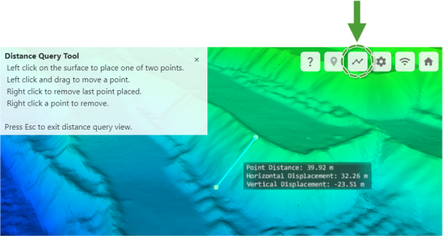 Distance Query Query the distance and horizontal/vertical displacement between two points clicked on the surface.