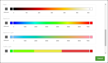 To define the colour for an interval (solid colouring) or at an interval boundary (smooth colouring), click on the colour swatch to show the colour picker and choose a colour.