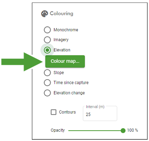 See Configuring colour maps on this page for details on configuring the elevation colour map.