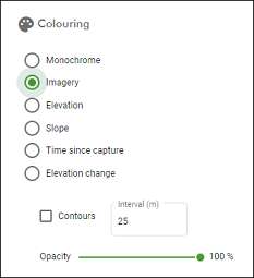 The Opacity slider allows you to make the current colouring method translucent, revealing the underlying satellite imagery.