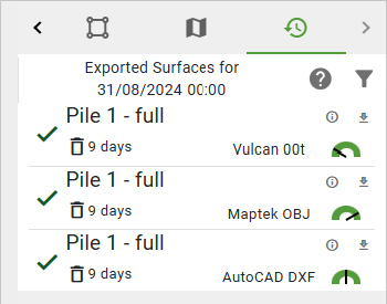 After a surface has been exported, it will also appear on the Exported Surfaces list for a predefined number of days, after which it will be automatically deleted.