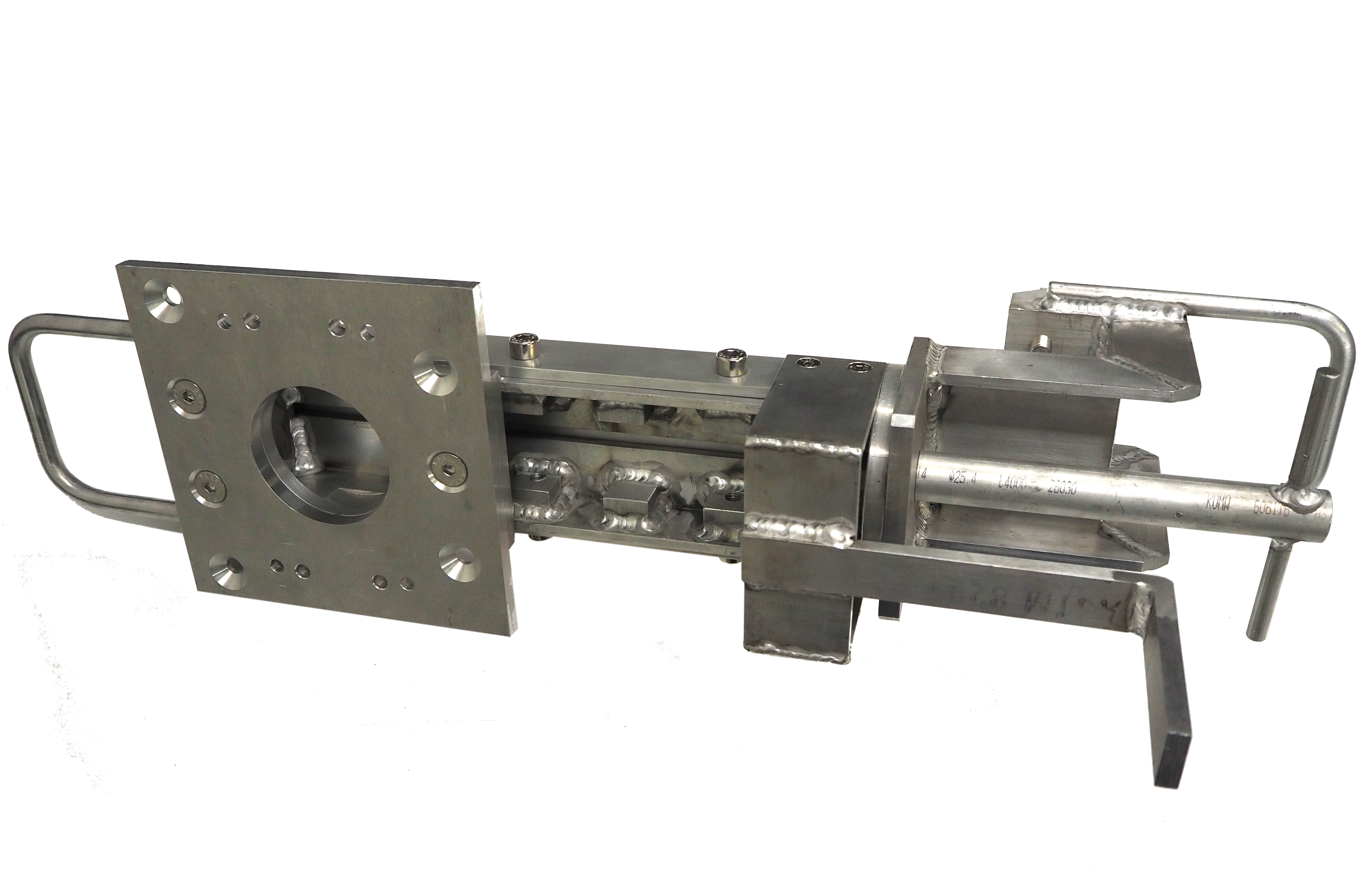 The stair rail bracket allows a scanner to be suspended horizontally over gantries or rails to permit stockpile scanning from an elevated position. |