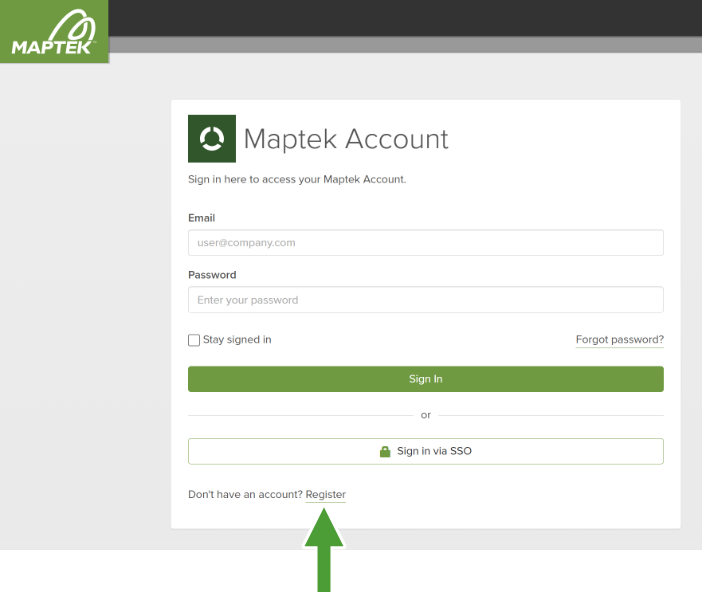 Go to account.maptek.com and click Register at the bottom of the page.