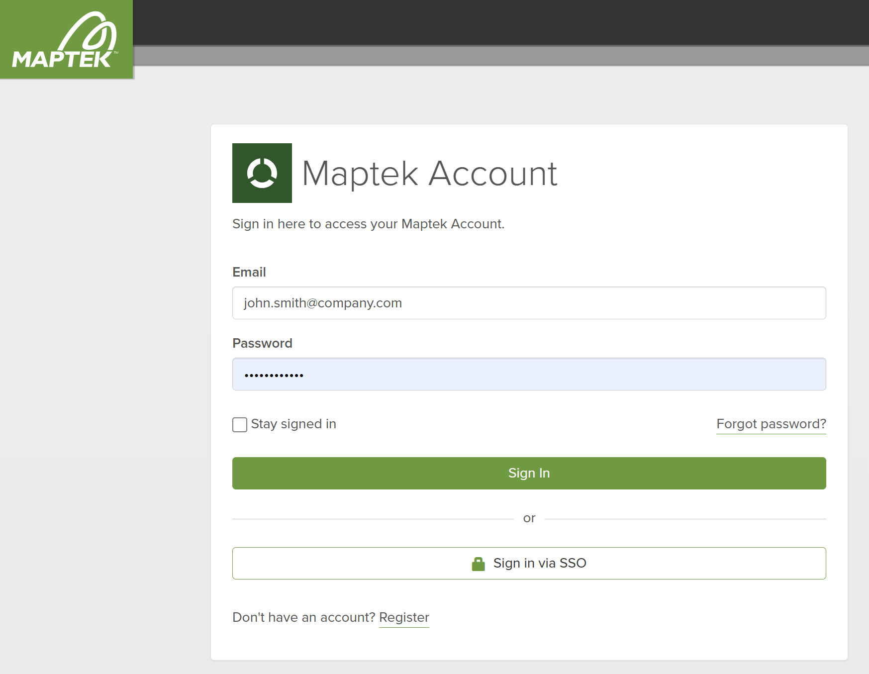 Tip: Configure Single Sign On (SSO) to streamline Maptek Account access. For details, download the Single Sign On (SSO) for Maptek Account instructions.