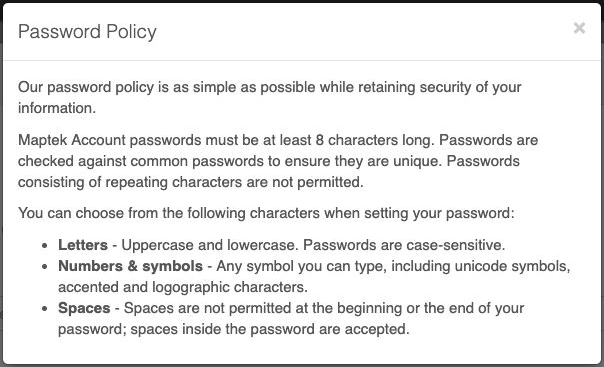 To view the password policy for Maptek Account, click