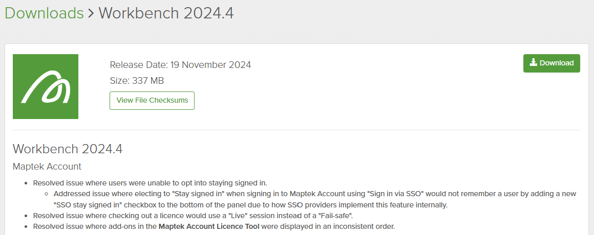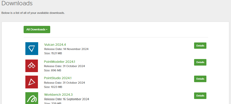 Click a product name or the corresponding Details button to view information about that product, including release notes. On the details page, click Download to start downloading the software.