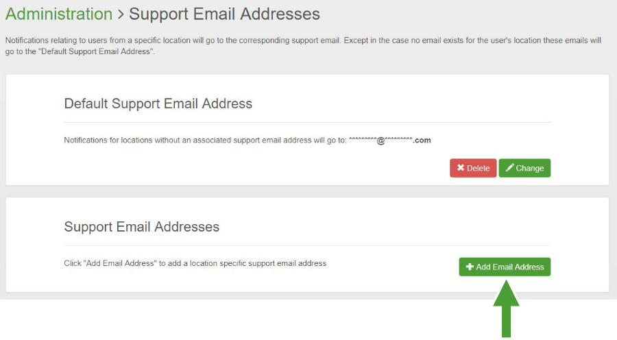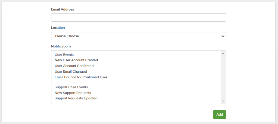 You must set up a default address to receive all support notifications before you can add other support addresses. Proceed as follows: