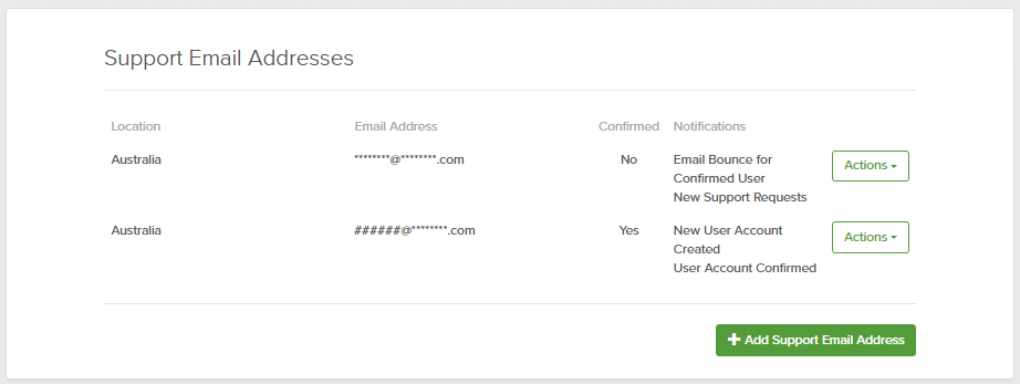 Note: Any cases not managed by these customised emails, are sent to the Default Support Email Address.