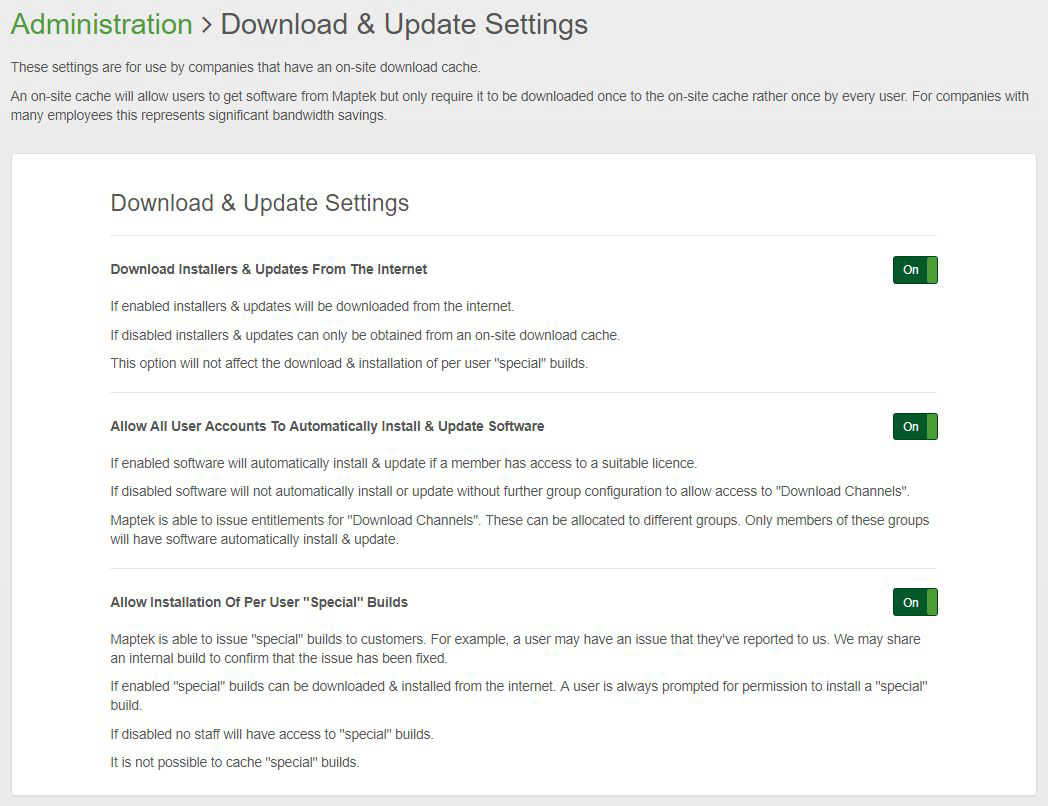 Note: This option will not affect the download and installation of per user ‘special’ builds.