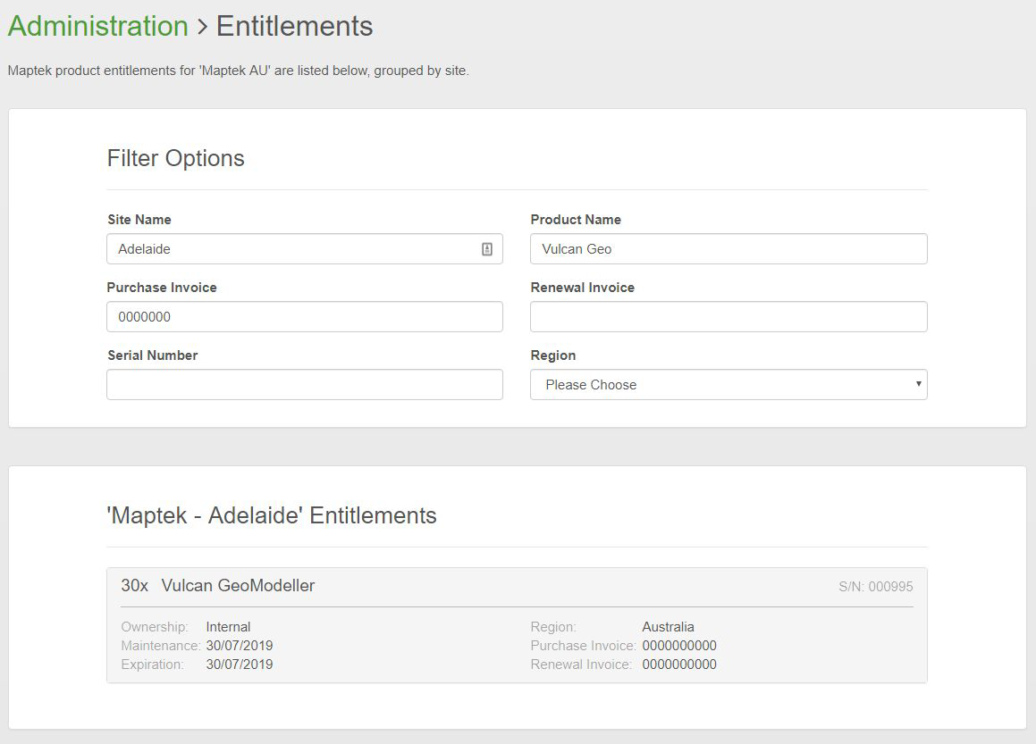 Administrators can view and move all entitlements in the organisation. Filters allow for searching on different properties of an entitlement.