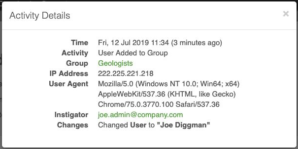 View a log of all changes to users, groups, and entitlements by administrators of the organisation.