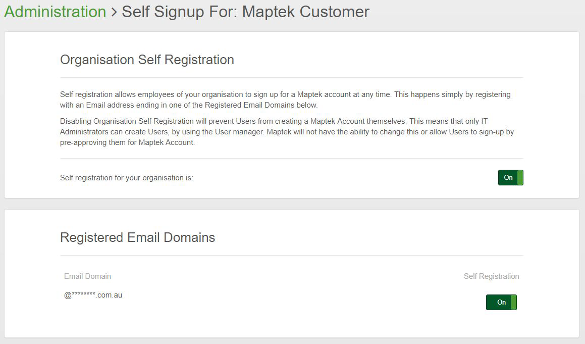 Maptek is able to register email domains on your behalf for self registration. This means that: