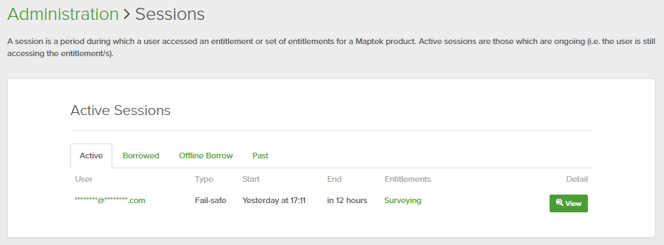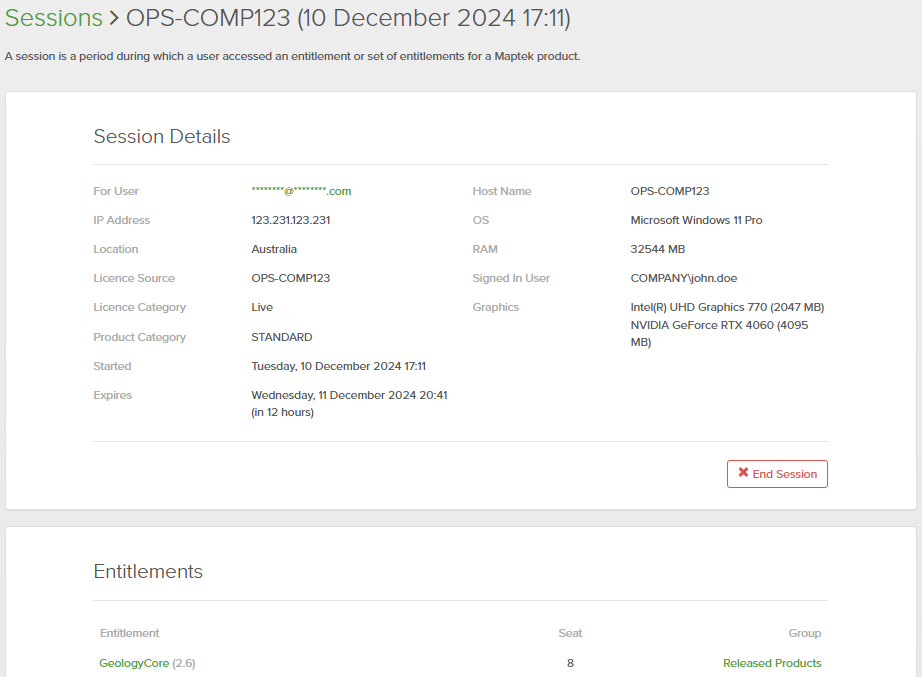 Click End Session to instruct the user’s software to return the in-use entitlements.