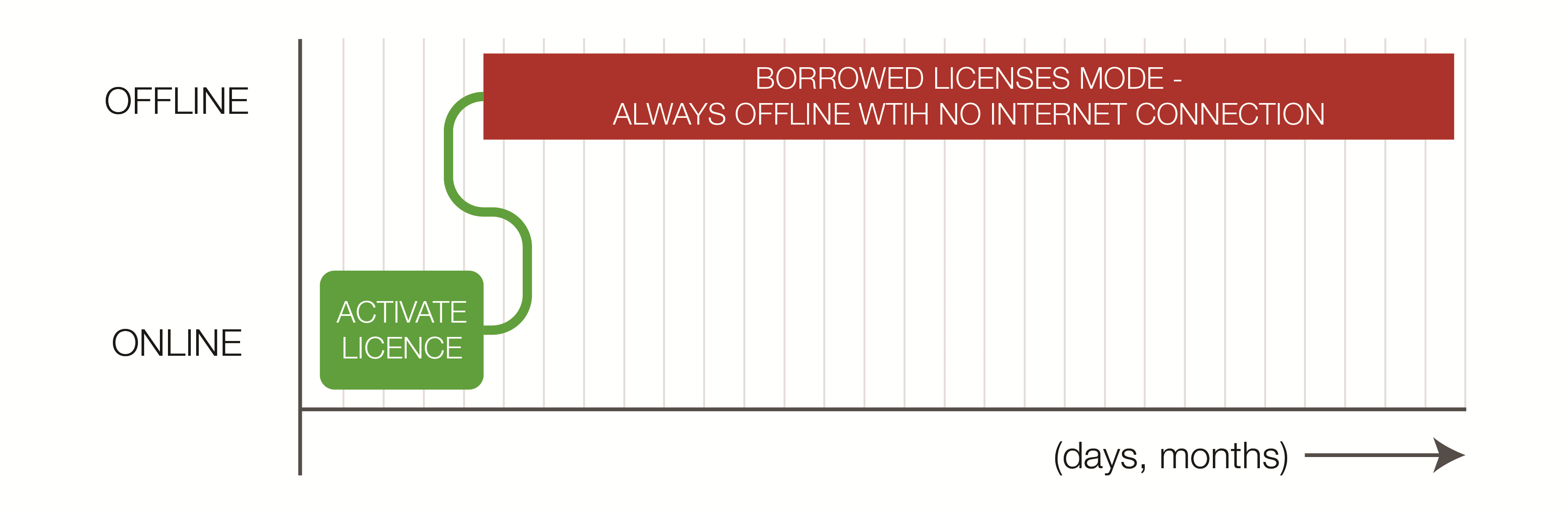 Timeline for borrowed licences (all offline) |