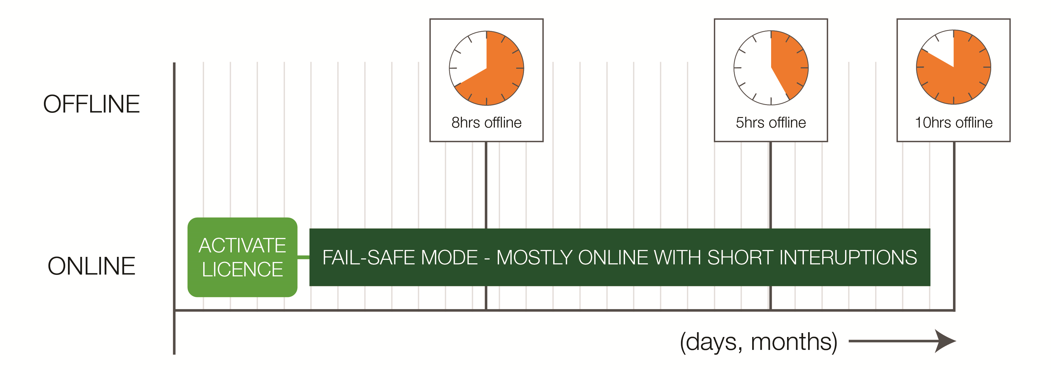 Timeline for fail-safe mode (mostly online with short disconnections) |