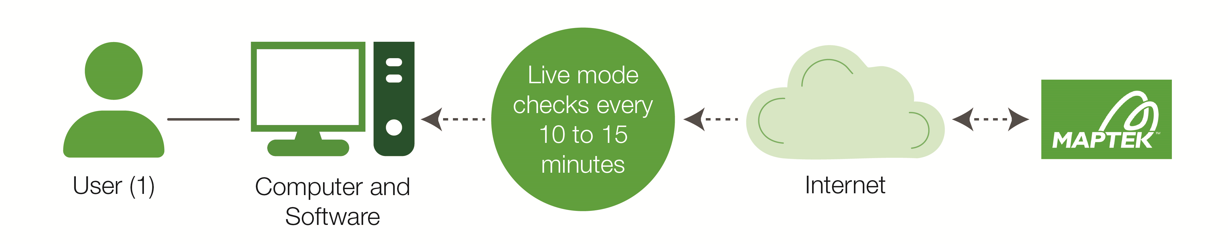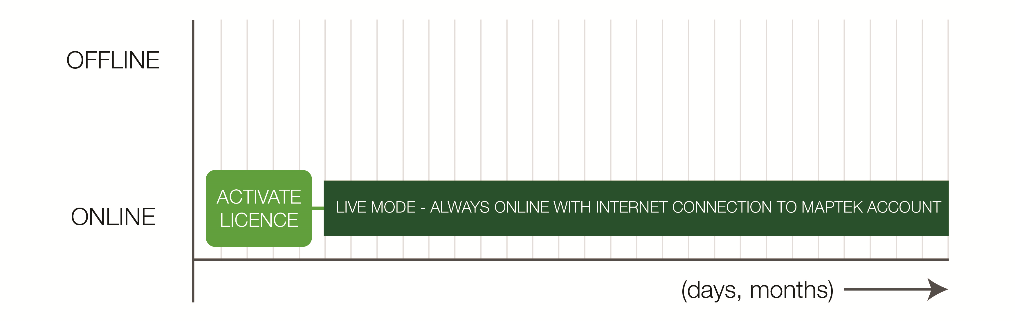 Live licence mode requires a continuous active internet connection because the Maptek software must periodically refresh the licence to continue working. The data requirements for this type of licence are very low.