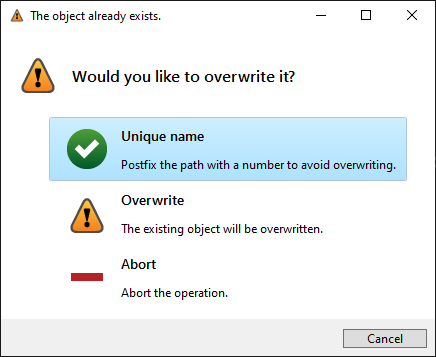 "Overwrite", "The existing object will be overwritten.", Icon.warning()