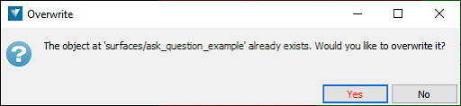 If the user presses Yes, the existing object is overwritten. If the user presses No, the script exits and the existing object is left unchanged.