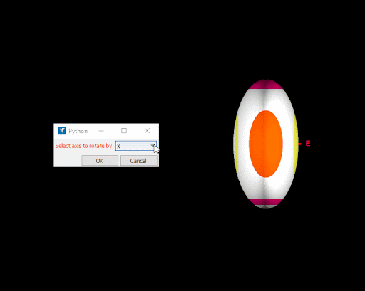 The request_string() operation has an optional choices parameter that allows for specifying a list of options for the user to choose from. If this argument is specified, then instead of a text field the window will contain a drop-down box containing the options. For example, the following script displays an ellipsoid and requests the user to select which axis they wish to rotate it around: