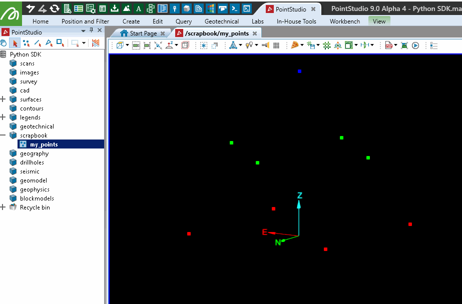 A point set is an arbitrary collection of points or 3D coordinates with no connections between them. A point set is represented in the SDK with the PointSet class. Arbitrary attributes can be applied to point primitives for analysis, filtering, or colouring purposes using the SDK. Many concepts discussed here also apply to other objects with point primitives such as Polyline, Polygon, EdgeNetwork, and Surface.