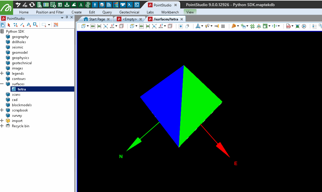 This example will demonstrates basic Surface construction by making a tetrahedron.